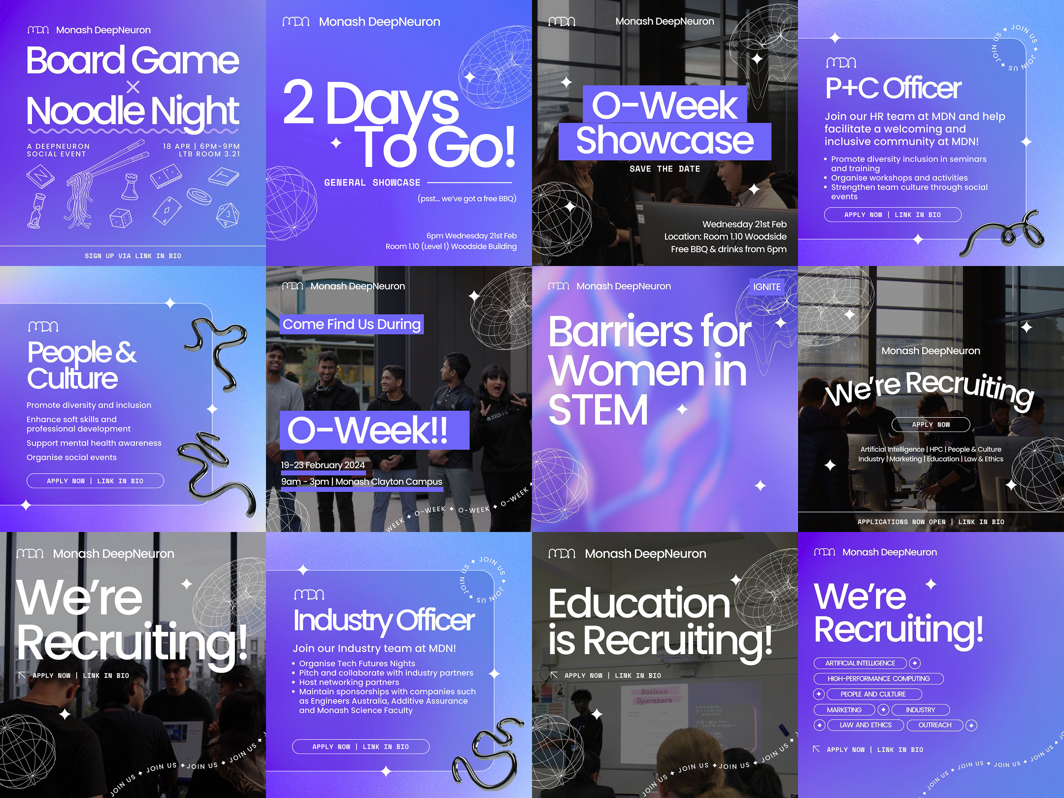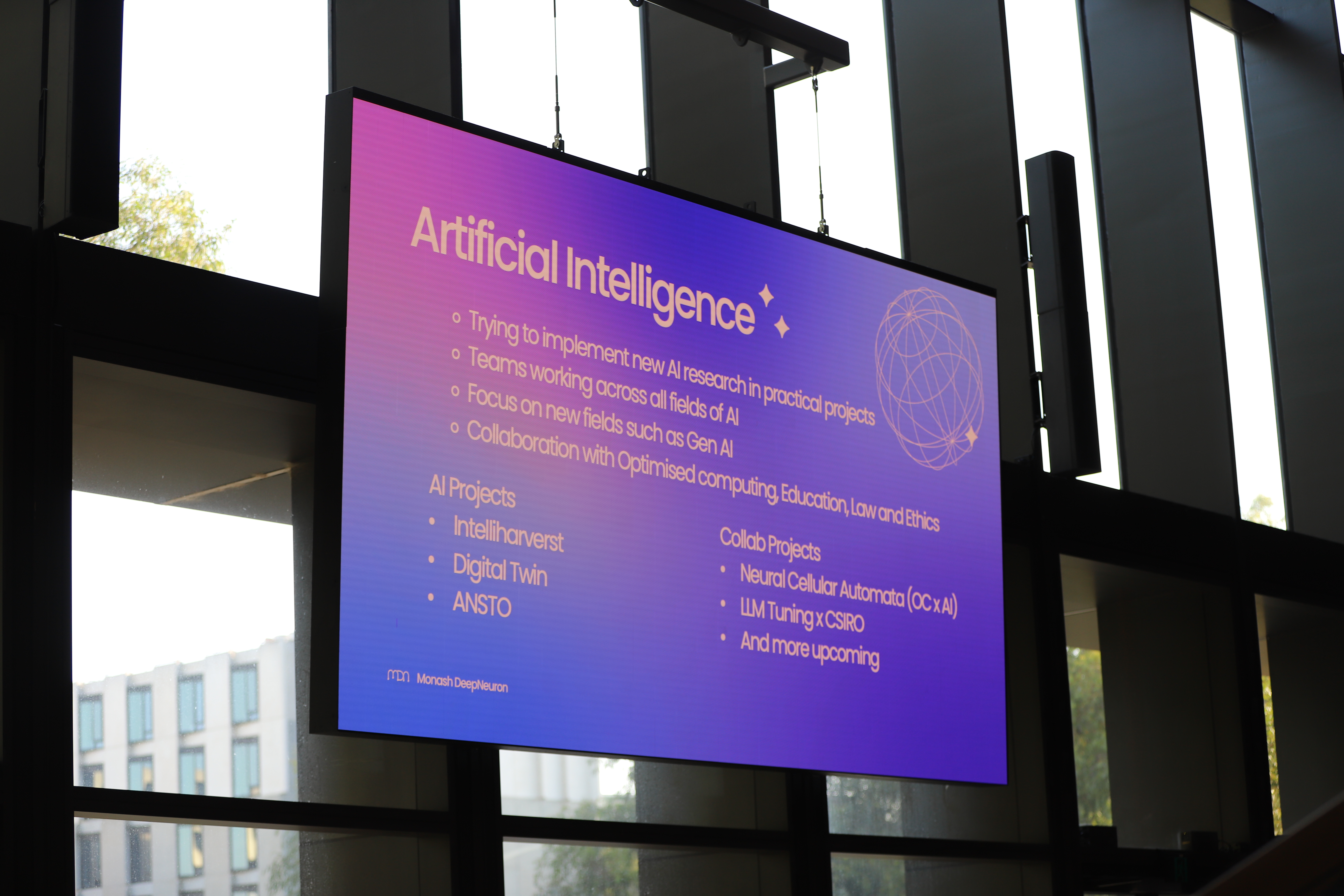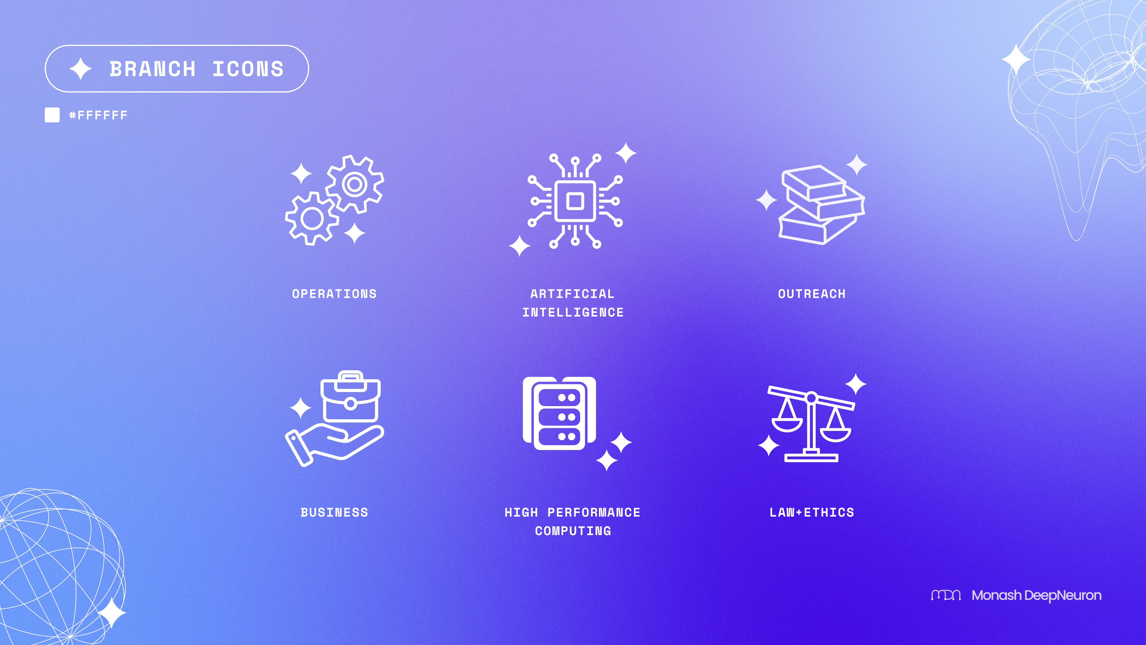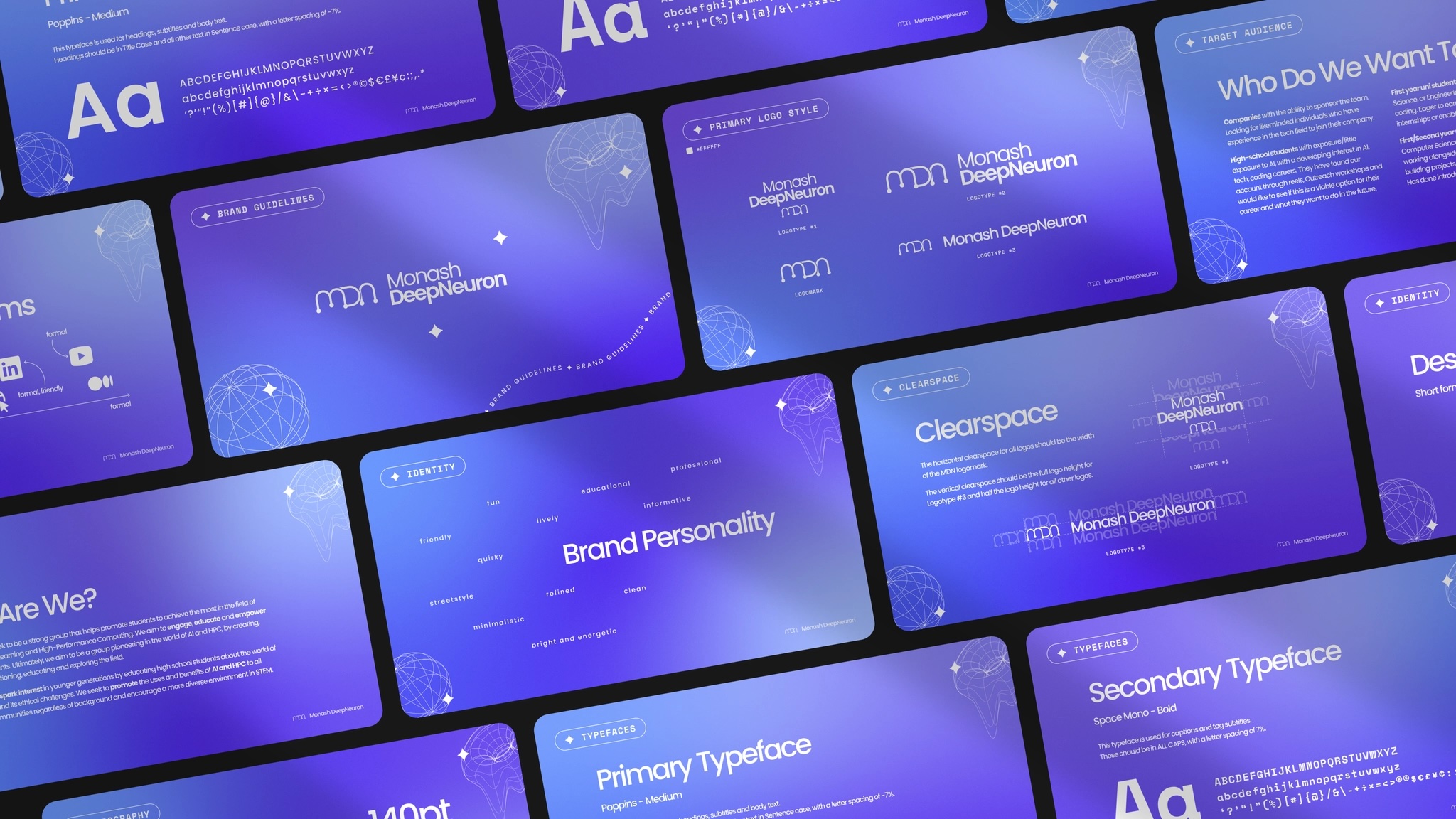 Monash DeepNeuron is a student team focused on improving the world with Artificial Intelligence (AI) and High-Performance Computing (HPC). Their audience is university students, particularly those in Engineering and IT, as well as high-school students. Monash DeepNeuron required updated visual branding in the form of logo variations and general style.